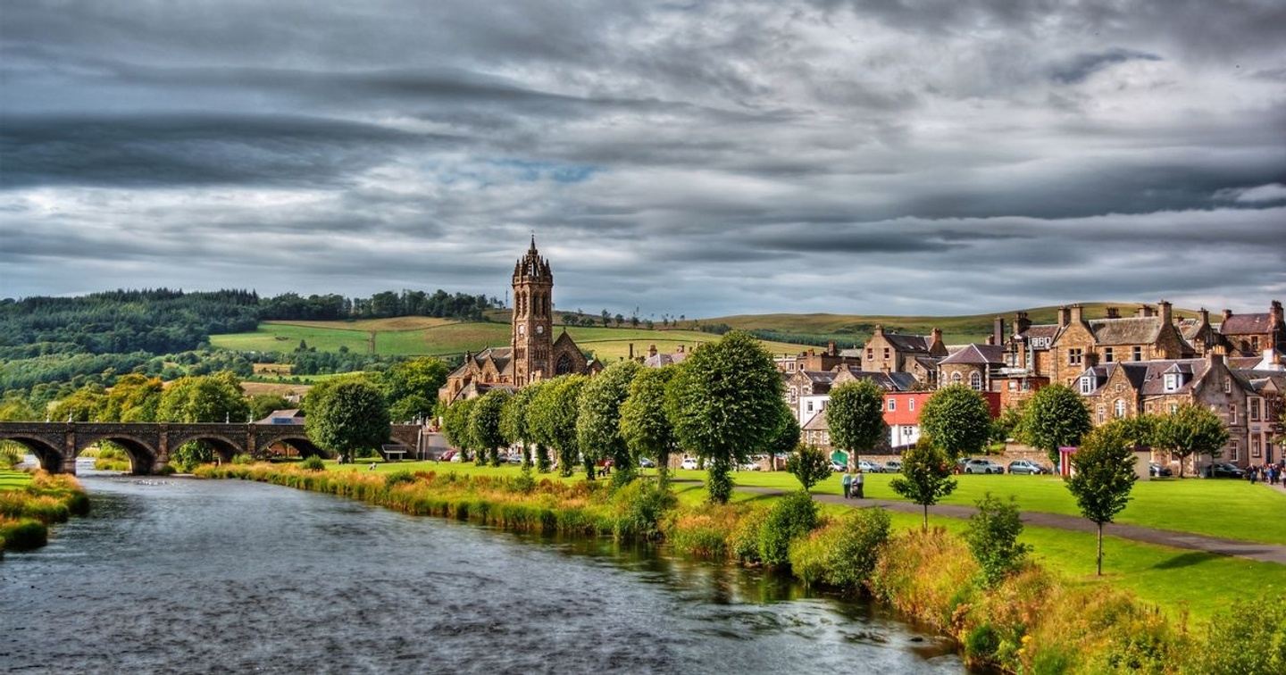 On a hill overlooking the River Tweed near Melrose is a striking statue of William Wallace (perhaps equally well known to modern readers as 'Braveheart'). The statue, erected in 1814, is just a few hundred yards from the ruins of historic Dryburgh Abbey and a very short distance from Scott's View, a popular viewpoint named for its links to author Sir Walter Scott, who is buried at Dryburgh.
